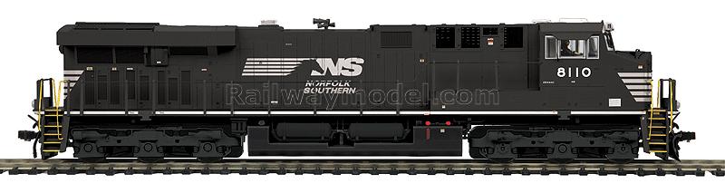 GE ES44AC аналоговая версия. Имеется разъем под установку стандартного DCC декодера. В кабине - фигурки машиниста и помощника, свет в прожекторах и номерных таблицах, освещение в кабине. Принадлежность Norfolk Southern #8110
